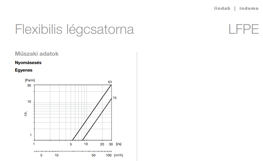 Egy DN160 cső 250 m3/h levegőt tud szállítani 1 Pa/m (minimális) nyomásveszteség mellett. A DN125 cső pedig 130 m3/h levegőt szállít ilyen kis veszteségnél.